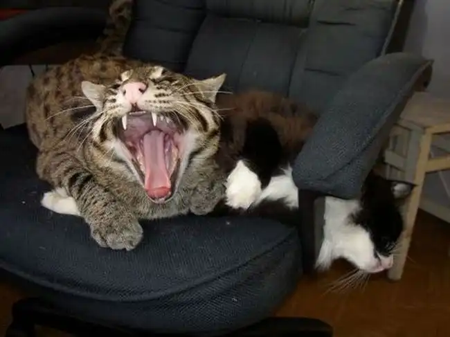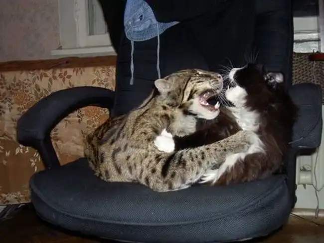 "Рыбные кошки имеют репутацию драчунов и забияк, однако встречи с человеком они избегают. Описывается случай, когда рыбная кошка разогнала стаю собак. Бытует миф о том, что рыбная кошка утащила четырехмесячного ребенка из Сингапура, впрочем, документально не подтвержденный. Однако заслуживает интереса подлинный факт, когда рыбный кот, самец, особо крупный экземпляр, содержащийся в зоопарке, вырвался из клетки, и войдя в клетку к Ягуару, убил его"... Так что кто из вас круче якуара ?( http://ru.wikipedia.org/wiki/РљРѕС?РєР°-рыболов )