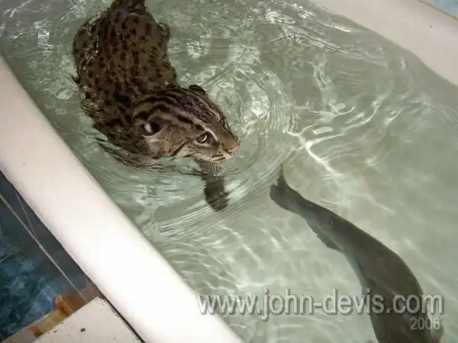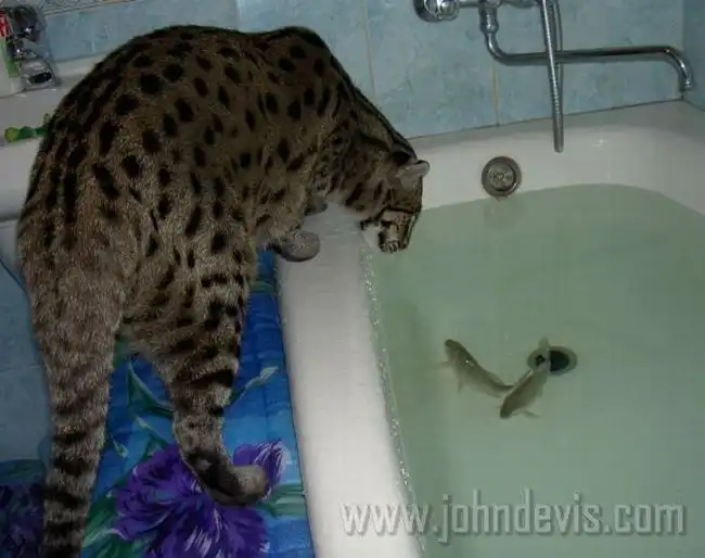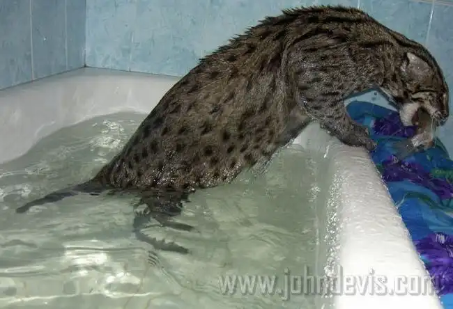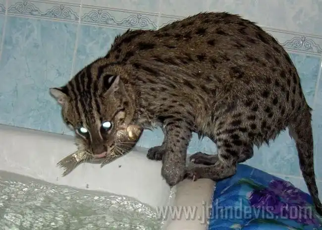 сразу видно по взгляду, что дикая. и эта киска не боится воды