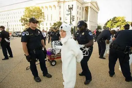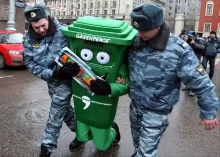 Действительно, забавно, особенно клоуны и зеленая урна гринписовцев))