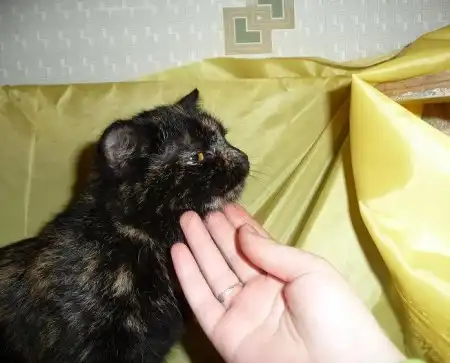 Ника- очень красивая,выразительная и милая кошка с интересной круглой мордашкой. Она контактная,любит ласку. В жару Ника лежала в яме, как тряпочка, мы подумали,что кошка мертва,но по обыкновению окликнули её, и кошка открыла глаза...свои ярко-желтые глаза. Она немного худовата, была очень голодной, много пила. Все процедуры Никуша вытерпела достойно. От паразитов избавлена. Конечно,показались ветеринарам. У Ники был сломан хвостик, сросся,но сейчас это не доставляет ей каких либо неприятных ощущений. Возраст 1,5 лет. В первые дни показала знание лотка. Ника ищет хозяев как можно скорее. К другим кошачьим терпелива. Отдается с условием ОБЯЗАТЕЛЬНОЙ СТЕРИЛИЗАЦИИ. Со скидкой хозяевам поможем.