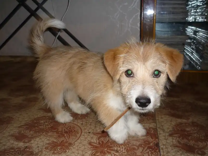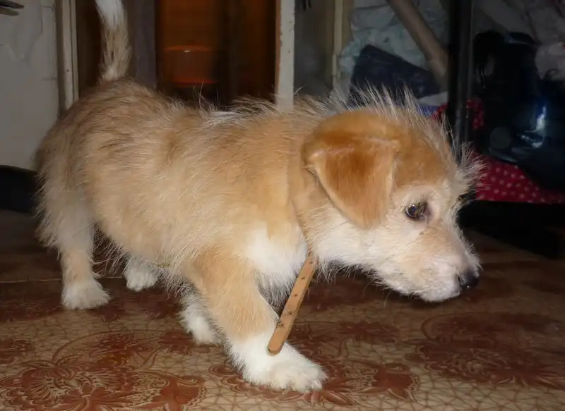 Маленький щенок, девочка (~5 месяца). Умненькая, задорная, ласовая. Короткие лапки, до старости останется маленькой.