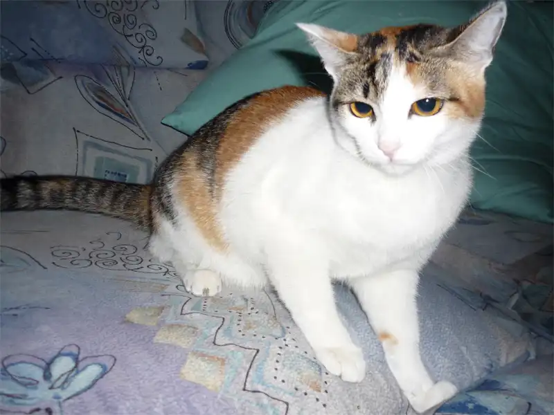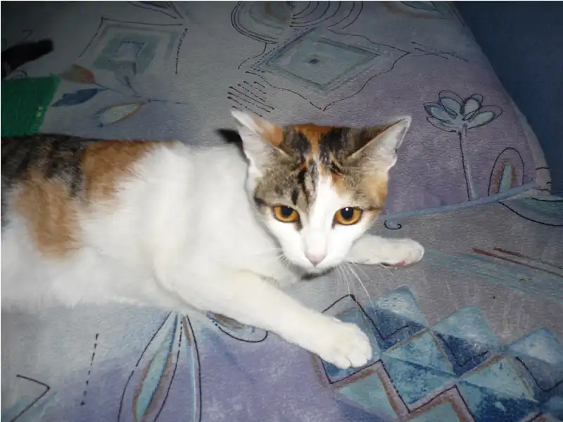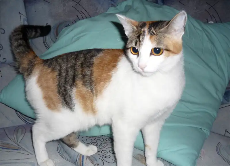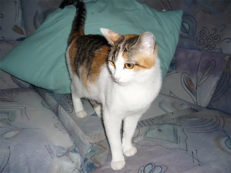 Молодая кошечка 8 месяцев ищет хозяева. Чистоплотная, приучена к лотку, кушает всё, хорошо ловит мышей, ласковая, любит руки, наделена мощным урчальником
