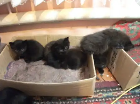 Котята: 4 мальчика и 2 девочки, к лотку, к сожалению не приучены, так как их слишком много. Очень веслые, пушистенькие!
