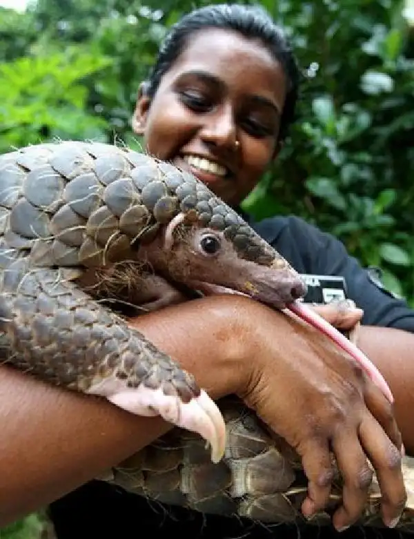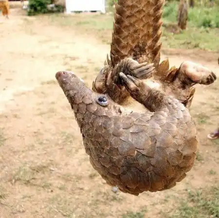 Забавная зверюшка, похожая на маленького броненосца. Это панголины или ящеры (по-латински Pholidota), отряд плацентарных млекопитающих. Их название происходит от малайского pengguling (сворачиваться в шар). Тушка как у дракона - покрыта крупной роговой ромбической чешуёй, лежащей как черепица друг на друге.