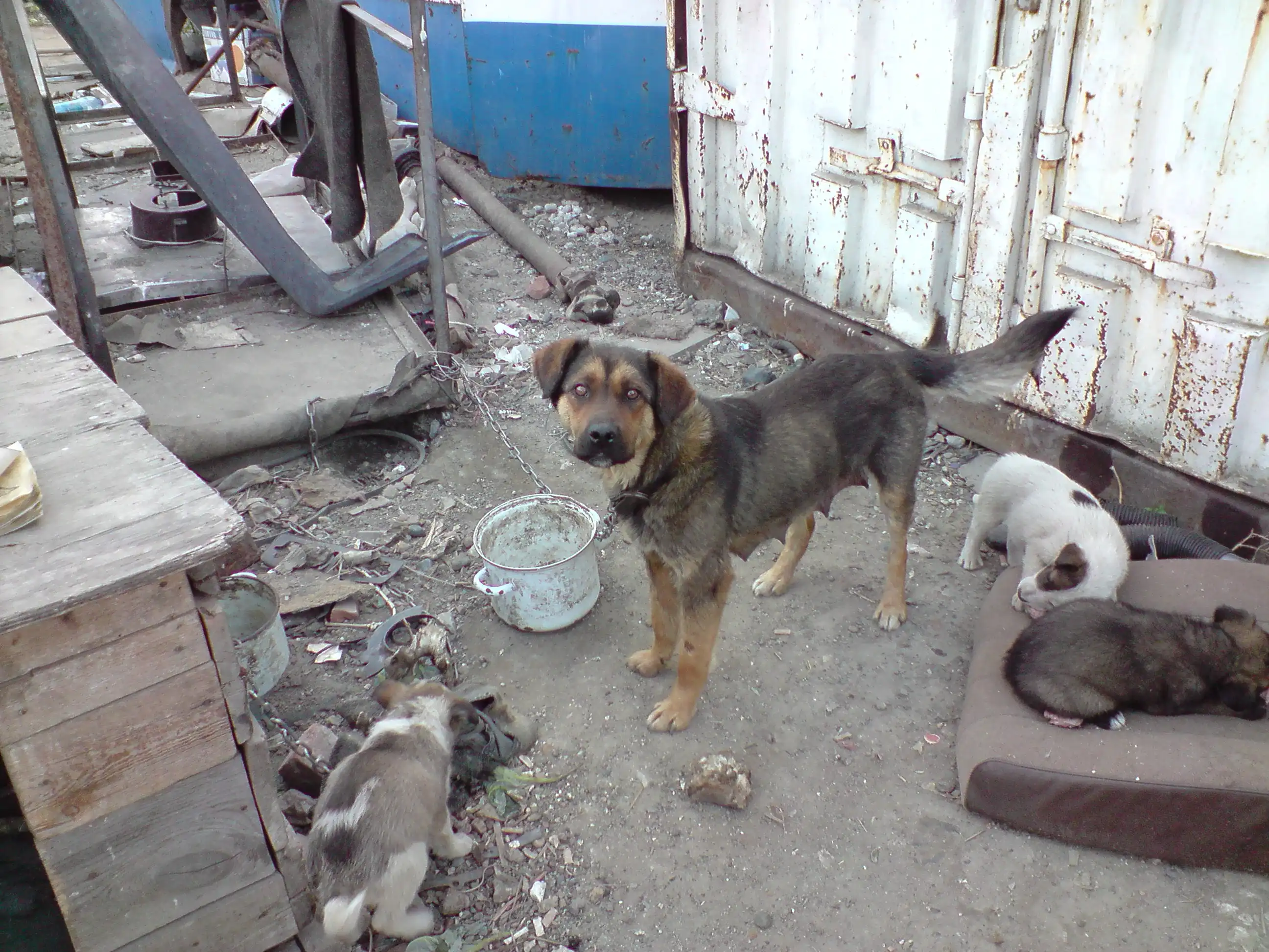 отдаются щенки от крупной сторожевой собаки. собака сидит на цепи на авторазборе. и ее, и щенков практически не кормят. как мне рассказали, собака принесла 8 щенков, но 5 умерли от голода, еще одного вчера задавила машина. осталось два щеночка.
