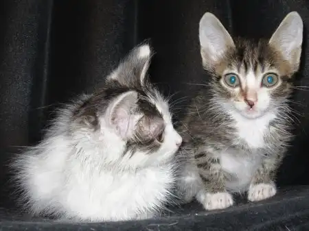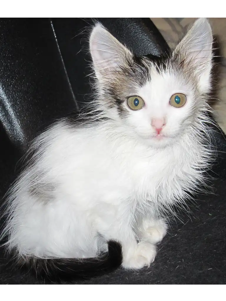 Вчера вечером обнаружила в подъезде 2-х котят серо-полосатого мальчика и невероятно пушистую бело-чёрную девочку, возраст примерно 1,5 месяца.
