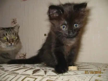 (в общем то черная, но подшерсток темно коричневый), полу-длинношерстная, уже самостоятельная, приучена к туалету, очень игривая. Интеллигентная - Маяковскому предпочитает Пушкина :biggrin: . На одной из фоток её папашка.