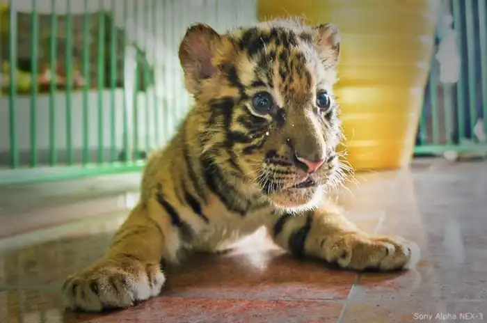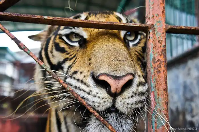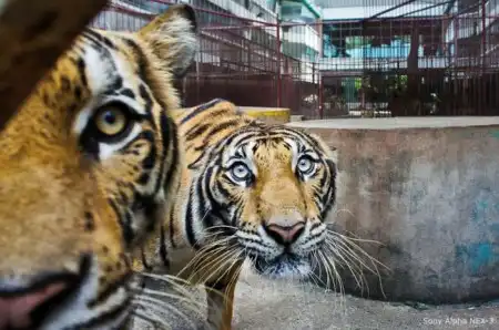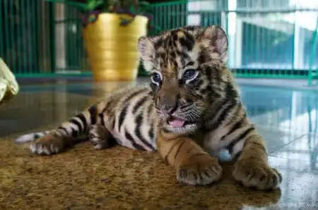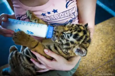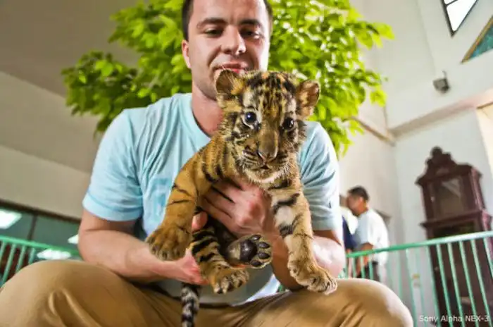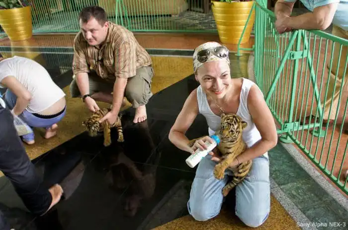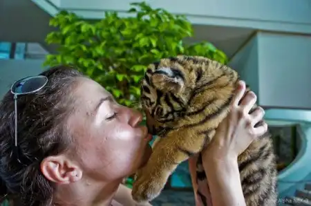 В этом зоопарке можно не только посмотреть, но и погладить, обнять настоящего тигра.---