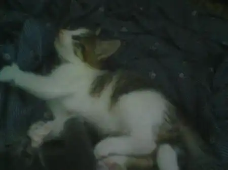 родилась от кошки-"подобрашки". веселая, послушная, приучена к лотку на "отлично", очень трогательная малышка.