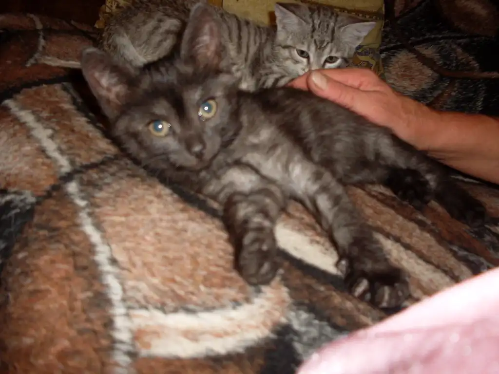 Котятам по 2 месяца. Темная девочка, спокойная, остальные мальчики. К лотку приучены.