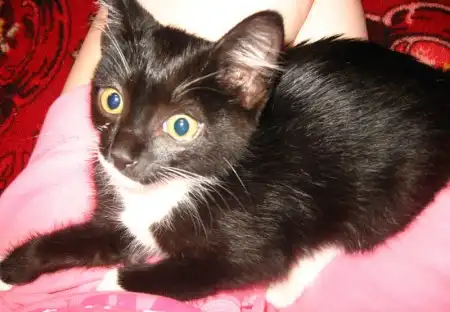 Котенок ооочень общительный, любит быть с человеком, внимательно слушает всех, и, даже если не ему говорят, пытается поддержать разговор своим тоненьким "пииии"