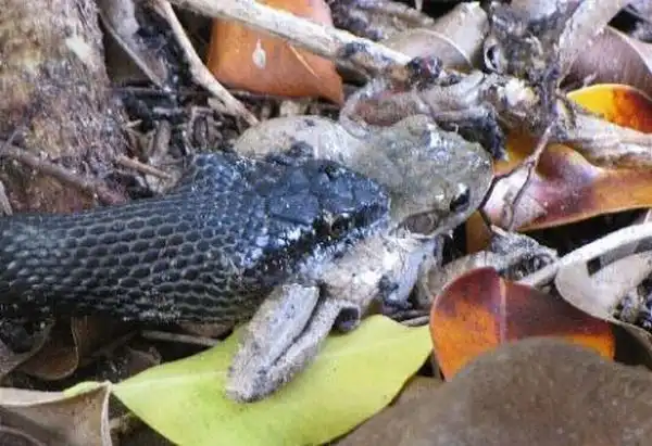Поединок длился около часа, змея пыталась проглотить жабу, но не так-то просто оказалось,