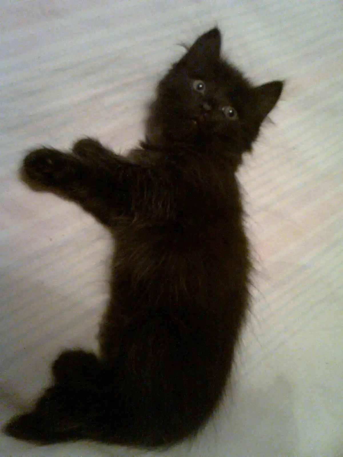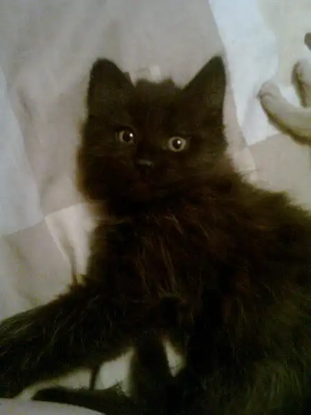Просто замечательная кошечка,тёмно-шоколадного окраса с редкими светлыми волосками на брюшке и лапках (2 месяца)очень желает заиметь доброго хозяина. К лотку кошечка приучена, кушает вместе с мамой всё. Девочка игривая, интересная, любит детей. Если вас заинтересовало это чудо, звоните по указанным телефонам с 8.00 до 23.00.