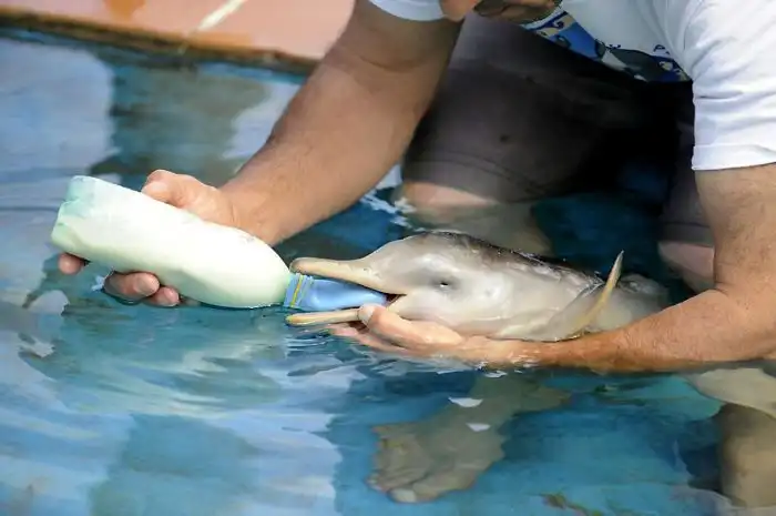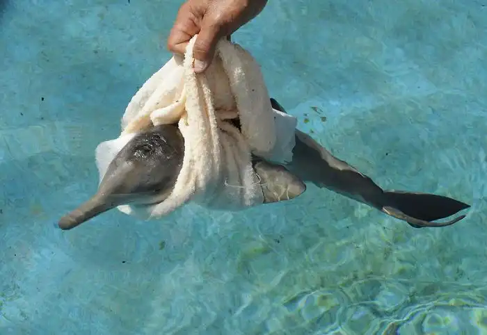 Сейчас он находится в местном дельфинарии и его жизни ничего не угрожает.