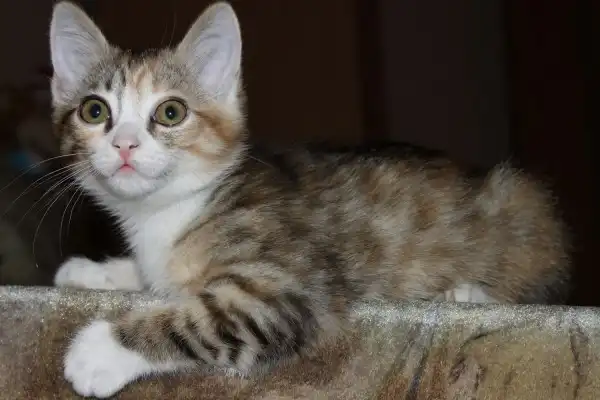 Месяц назад я забрала из подъезда двух маленьких грязных очаровательных котят. Помыла, паразитов протравила. Девчонки оказались на удивление спокойными и умненькими, освоили лоток на "отлично". Одна кошечка уже 2 недели благополучно живет в новом доме, а Марусю пришлось оставить еще на некоторое время у себя, чтобы немного подлечить и откормить. Сейчас девочка здорова, ей примерно 2,5-3 месяца (точно сказать не могу). Маруся (так мы назвали котенка) ласковый, спокойный ребенок. В меру игривая, любит побегать за моим котом, вернее за его хвостом. Когда берешь ее на руки - мурлычет и кладет голову мне на плечо. Любит подремать на коленях. Ночью спит спокойно.