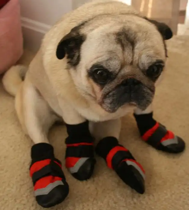 Я знаю собакам надевают на лапы, приблуды специальные, чтобы они пол не царапали когтями.