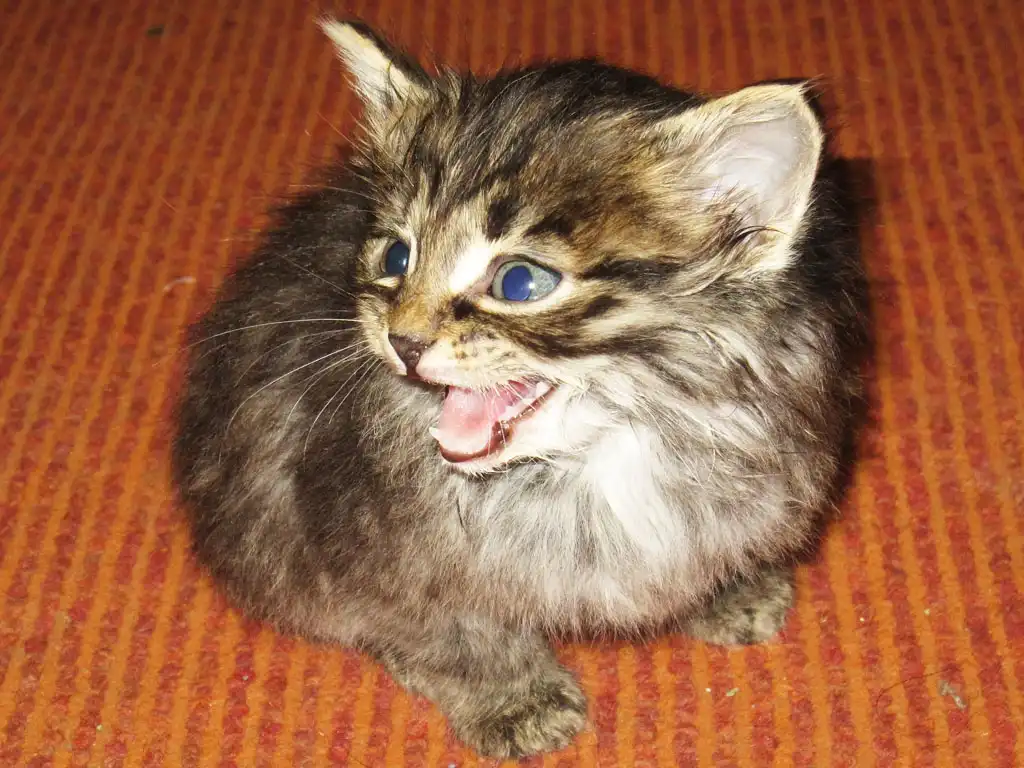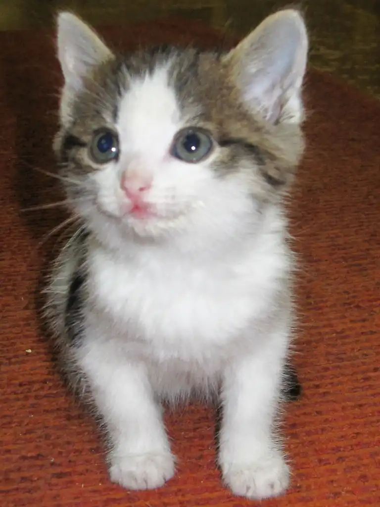 Возраст котят около 2 месяцев, 2 мальчика (серый, очень пушистый и бело-серый) и 1 девочка (бело-серенькая).