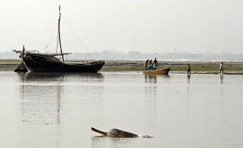 4. Речной дельфин – последний потомок одной из ранних групп длинноклювых дельфинов, плававших в морях миллионы лет назад. Этот странный дельфин с тонким носом практически слепой. Он плавает на боку и брюхом вверх и использует пальцеподобные образования на плавниках, чтобы искать еду на дне рек. (Rex Features)