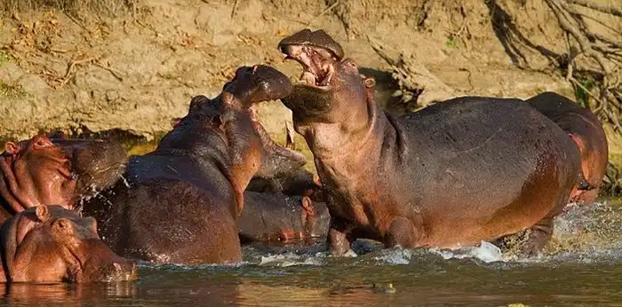 Крокодил решил перебраться на другую сторону реки, вот только способ у него не самый безопасный, он это сделал на спине бегемота. Случай этот был зафиксирован в Танзании.