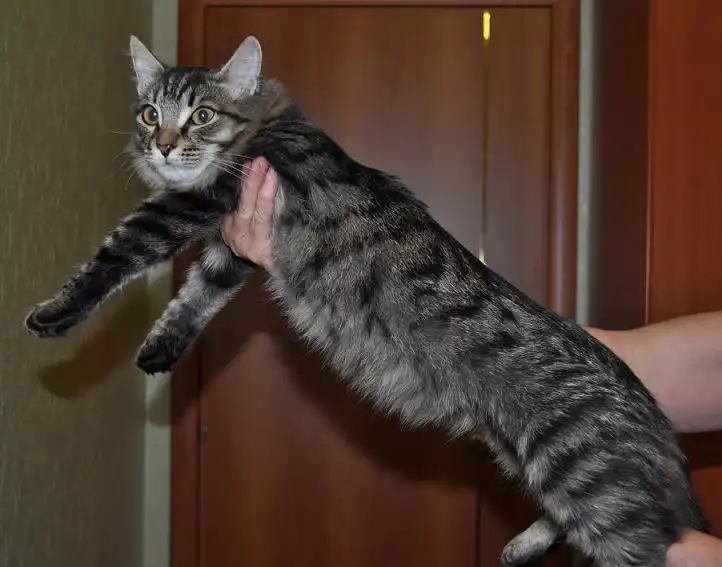 Обещает вырасти в крупного, роскошного кота. В окрасе есть что-то от сибирской кошки, чем-то на рысёнка похож.