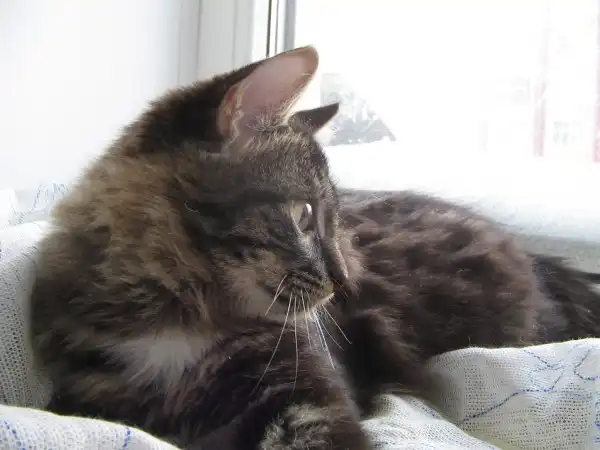 Котенку почти 4 месяца. К лотку приучен. Кушает почти все. Ласковый и игривый.