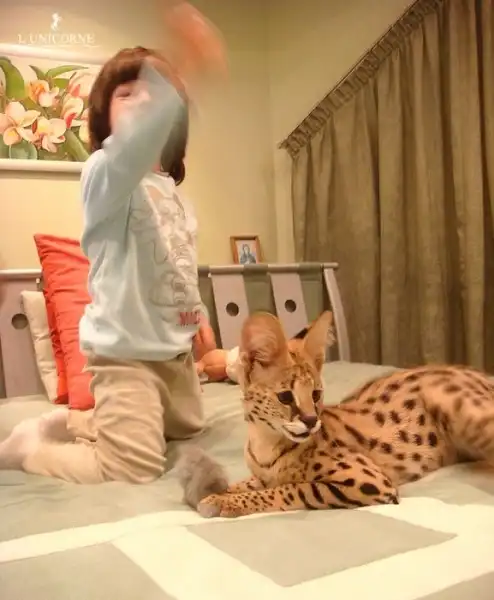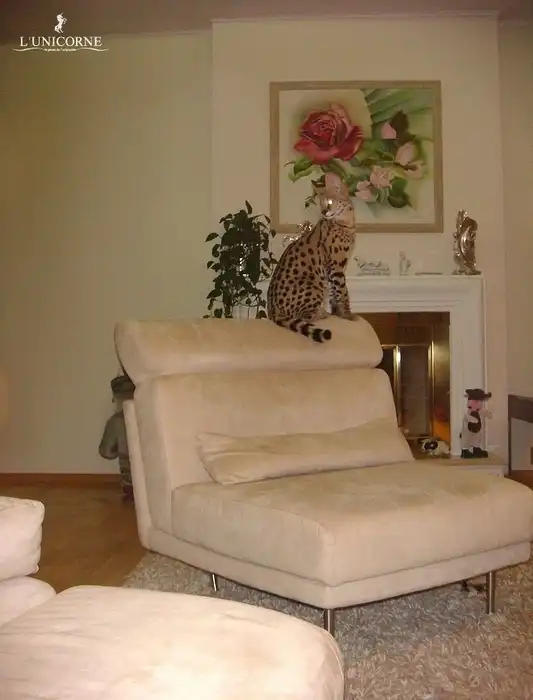 размер средней собаки, домашние Сервалы абсолютно безопасны, в том числе для детей и домашних питомцев.