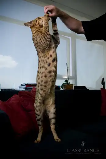 но с более покладистым характером. Вырастают Саванны F1 до 40-45см в холке при весе 12 кг.