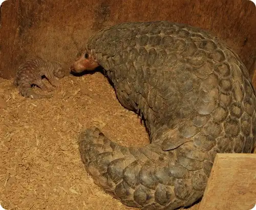 Сообщается, что новорожденный панголин проводит свое время, как и все остальные детеныши – спит, пьет молоко и совершает прогулки, забравшись на спину матери.