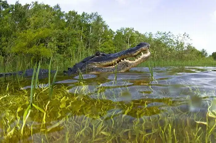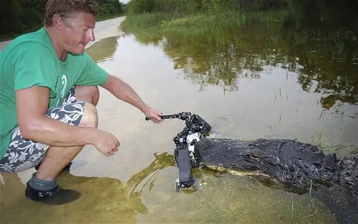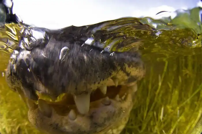 Они, рискуя жизнью, вплотную подходят к аллигатору, чтобы сделать фотографию крупным планом.