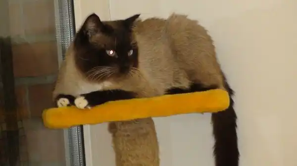 "С Новым годом вас. Кота зовут Бакс. Окрас плюшевый сиамский"