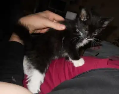 Лопает сушку, без промахов знает лоток. Находится в замечательном возрасте - примерно 2,5 месяца. Умен, игрив и очень ласков. Любит общество - как животных, так и людей.