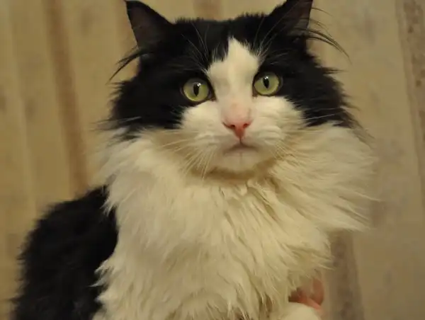 Крупный, пушистый чёрно-белый кот. Возраст 1-1,5, года. Кастрирован.