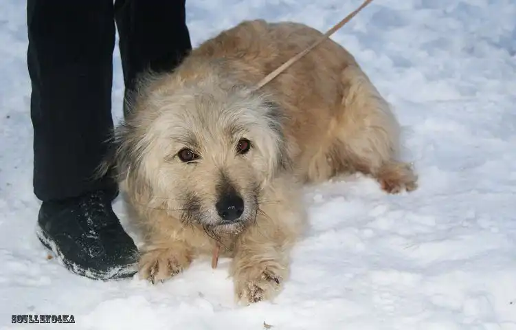 После поисков, удалось, наконец, забрать её на временную передержку. Когда она жила на улице и голодала - неравнодушные люди по-своему поддерживали её. Известно, что этим летом дачники уехали, а Дельку бросили. Как домашняя собака спасалась от морозов - загадка. Возраст - ок. 2-х лет.