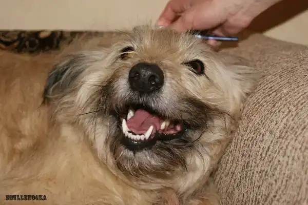 Свою кличку она получила за телосложение - короткие лапки и длинное тело (внешне можно сравнить с бассетом)=> Cарделька = Делька:) На имя отзывается. Дома ведет себя очень и очень хорошо. Не гадит, хозяйских животных не обижает. Присмотрится к человеку - улыбается, виляет хвостиком, гладится. Терпит расчесывание... шерсть-то была "как следует" скатана, что тоже приносило ей немалые неудобства.