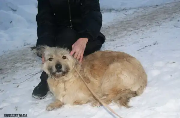 Собака очень любит людей.При первой попытке вывести на улицу(на прогулку) - панически кричала, не хотела обратно туда, но потом всё увереннее стала гулять, то и дело прижимаясь к ногам людей, искала поддержку, намучилась от страха и одиночества.