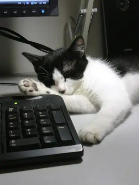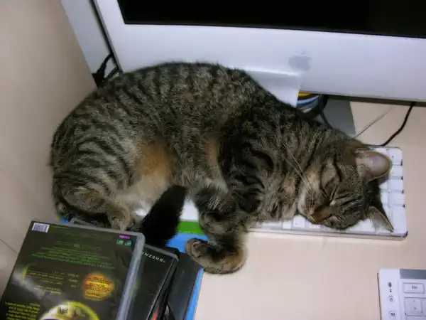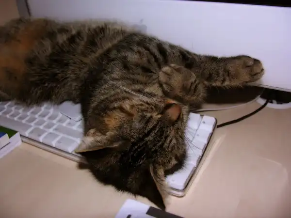 А мой кошак ложится ко мне на колени, а передние лапы в знак протеста складывает на клавиатуру)
