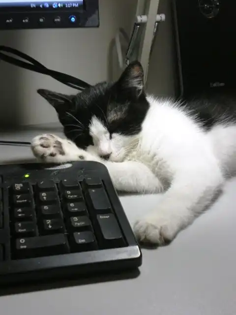 )))клево, а я думала, что только моя любит лежать возле клавы или на ней))