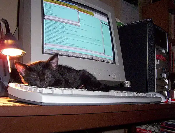 ну так клавиатура же тёплая) на ноуте, во всяком случае. Вот и греются кошаки)