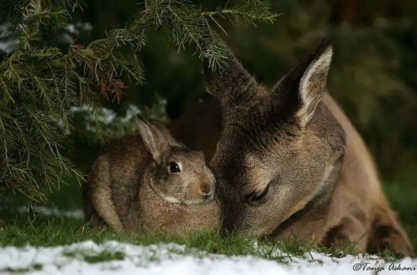 пусеньки какие))) странные олени - зайсев нюхают)))
