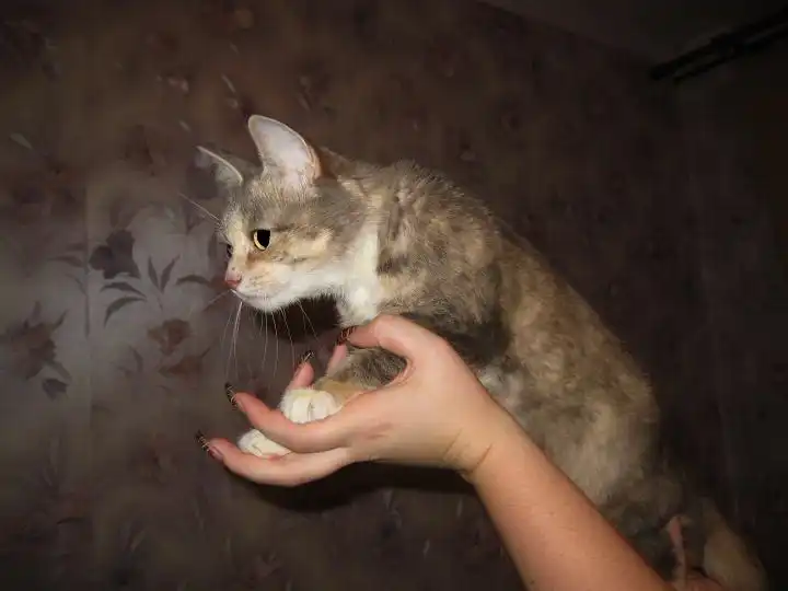 Зовут эту красавицу Шмонька, но в связи с переменой в ее характере она теперь Лиза-Зализа, кошечке на взгляд около 6-8 месяцев, отлично знает лоток, кушает сушку, мясо вместе с моими есть не стала, хотя консервы лопает за милый мой.