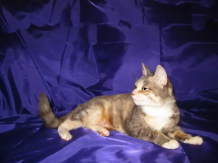 У кошечки очень удивительная шерсть и окрас, фотографии не передают полностью это, где то явно пробегали у нее дончаки в крови, потому что таким ушам и морде взяться просто не откуда было.