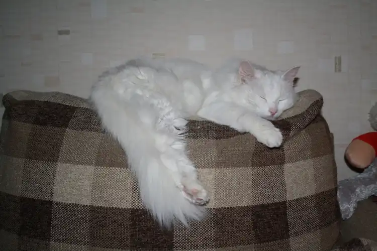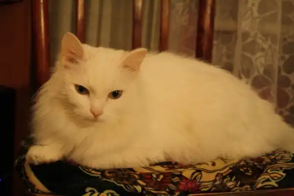 Белая пушистая кошечка со светло-зелеными глазками ищет заботливого хозяина и теплый, уютный дом.