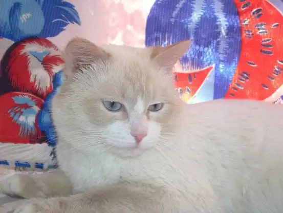 2) Кот кремово-персиковый с голубыми грустными глазами, крупный, возраст более 2-х, кастрирован. Очень ориентирован на человека, безумно ласков, когда его берешь на руки, крепко обнимает за шею. Обладает идеальным характером, знает лоток, пользуется когтеточкой. На данный момент ест сухой и влажный корм, но при желании можно перевести и на натуральную пищу.
