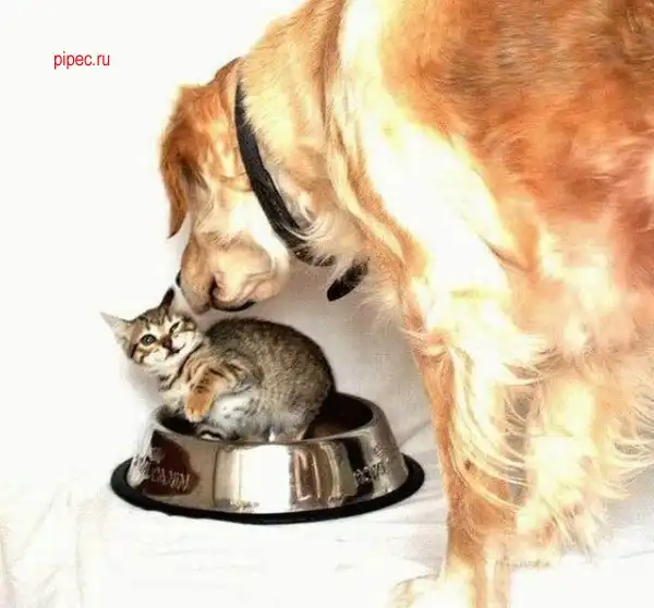 А еще говорят что кошки с собаками злейшие враги! Врут заразы!)))