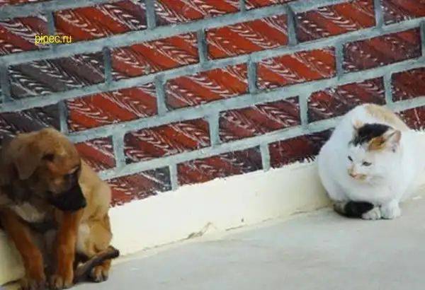 Фотографии про щенка и кота у кирпичной стены - за душу берут!