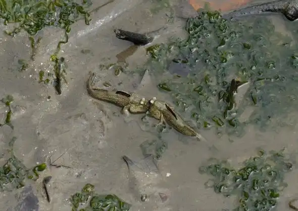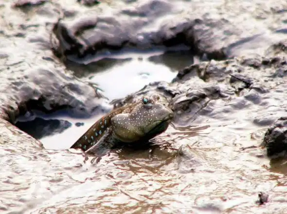 Внешне илистые прыгуны больше похожи на амфибий, чем на рыбу. Да и образ жизни у них отчасти совпадает с земноводными. Длина этой рыбки не превышает 15-20 сантиметров. Все ее тонкое серо-коричневое тело усеяно различными темными пятнами и серебристыми блестками. Непропорционально большую голову украшают выпуклые на макушке глаза и огромный рот. Передние плавники больше похожи на лапки, при помощи которых она выбирается из воды на сушу.