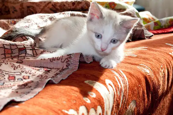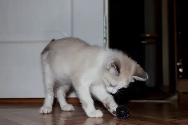 Веселая, озорная, отважная, игривая. Любит полежать на ручках и помурлыкать. Очень ласковая и разговорчивая. Гоняет взрослого кота. Лоток освоен на отлично. Кушает влажный корм и натуральную пищу.