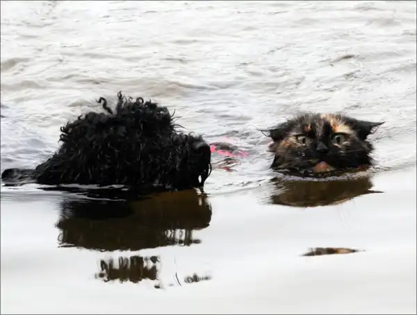 И да, если вы решили поплавать со своим пушистым (или не очень:)) питомцем, следите, чтобы вода не попала ему в уши, это для кошек очень опасно!