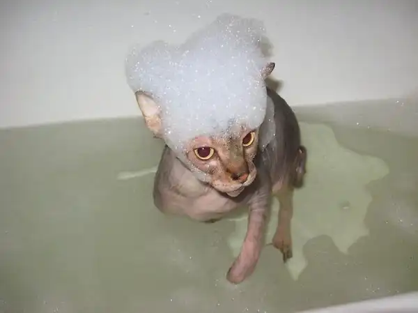 Судя по этому снимку, сфинксы очень любят принимать пенную ванну