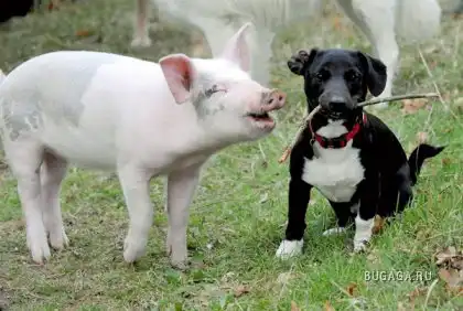 А вот английская свинка абсолютно уверена в том, что она собака.)